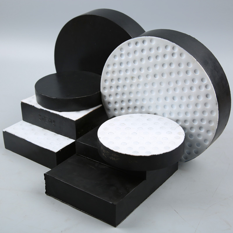 矩形、圓形板式橡膠支座由多層橡膠片與薄鋼板鑲嵌、粘合壓制而發。有足夠的豎向剛度以承壓垂直荷載,能將上