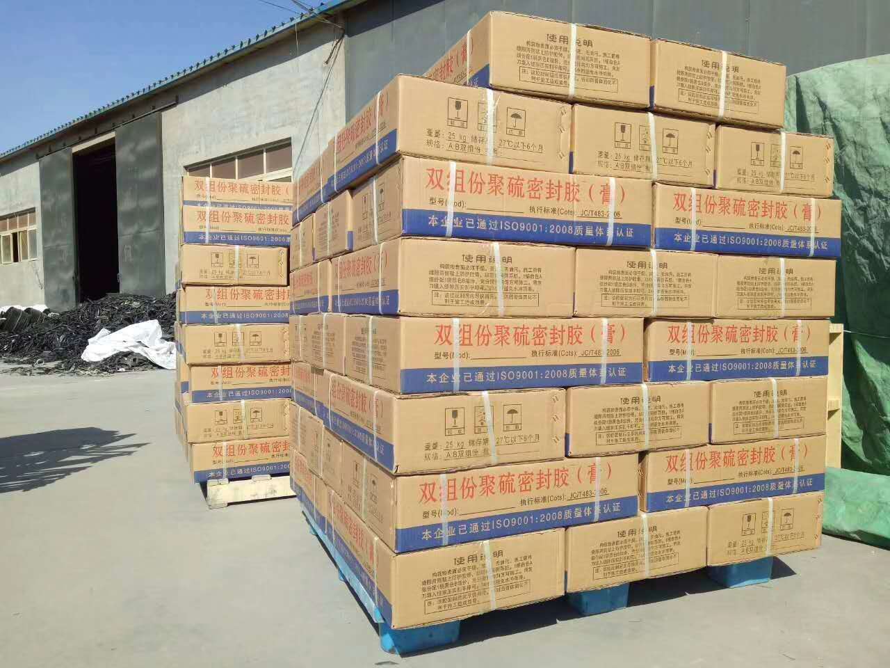聚硫密封膏箱內有一桶白聚硫膠和一桶黑固化劑充分攪拌均勻直到無色差為止。將雙組份聚硫密封的AB膠同時倒
